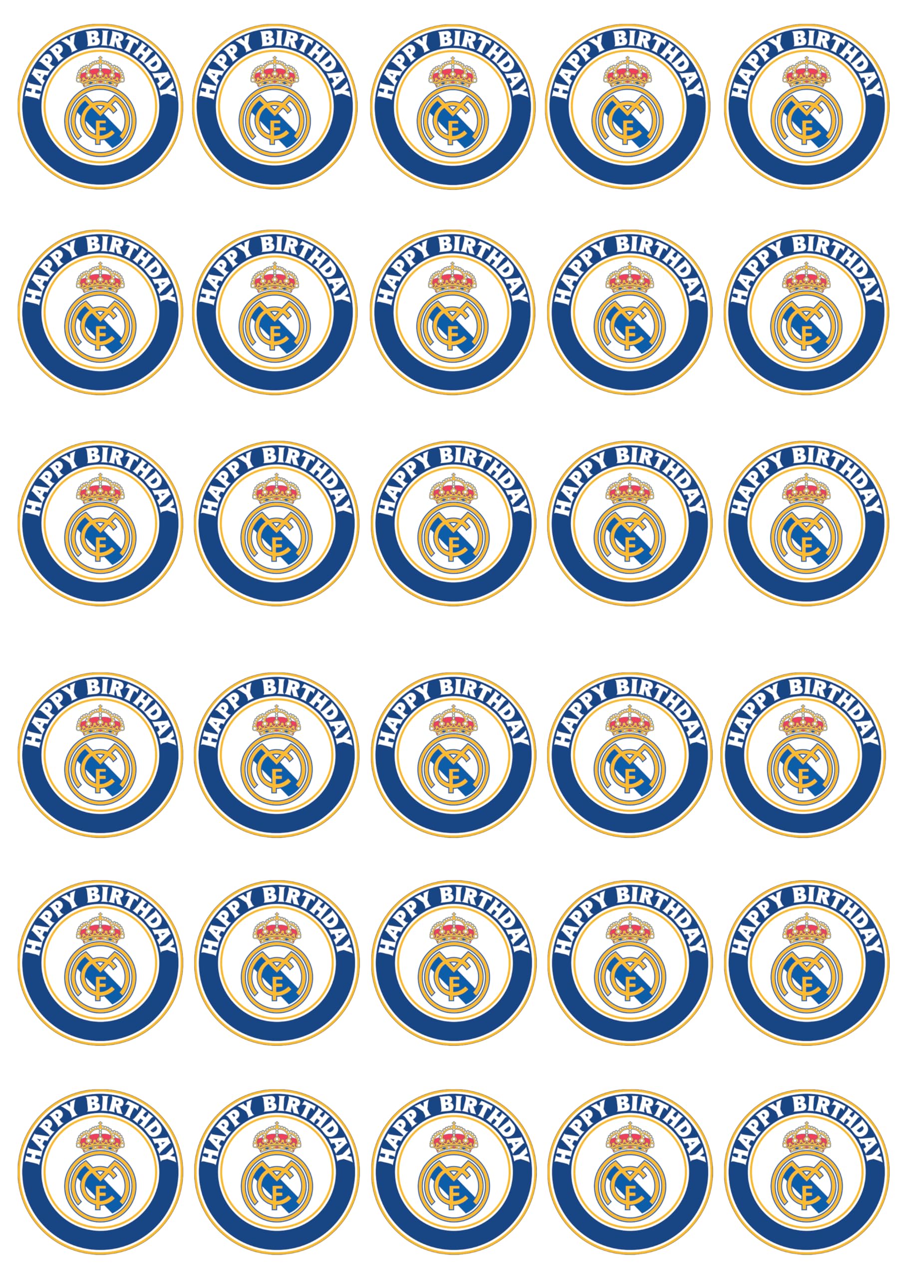 30 x Edible Cupcake Toppers – Madrid's Football Themed Collection of Edible Cake Decorations | Uncut Edible on Wafer Sheet