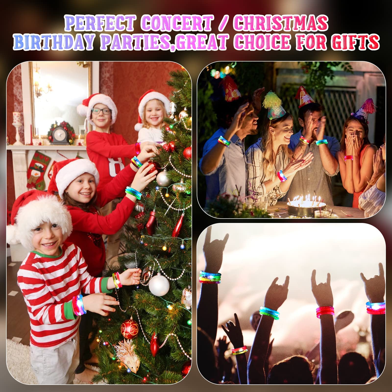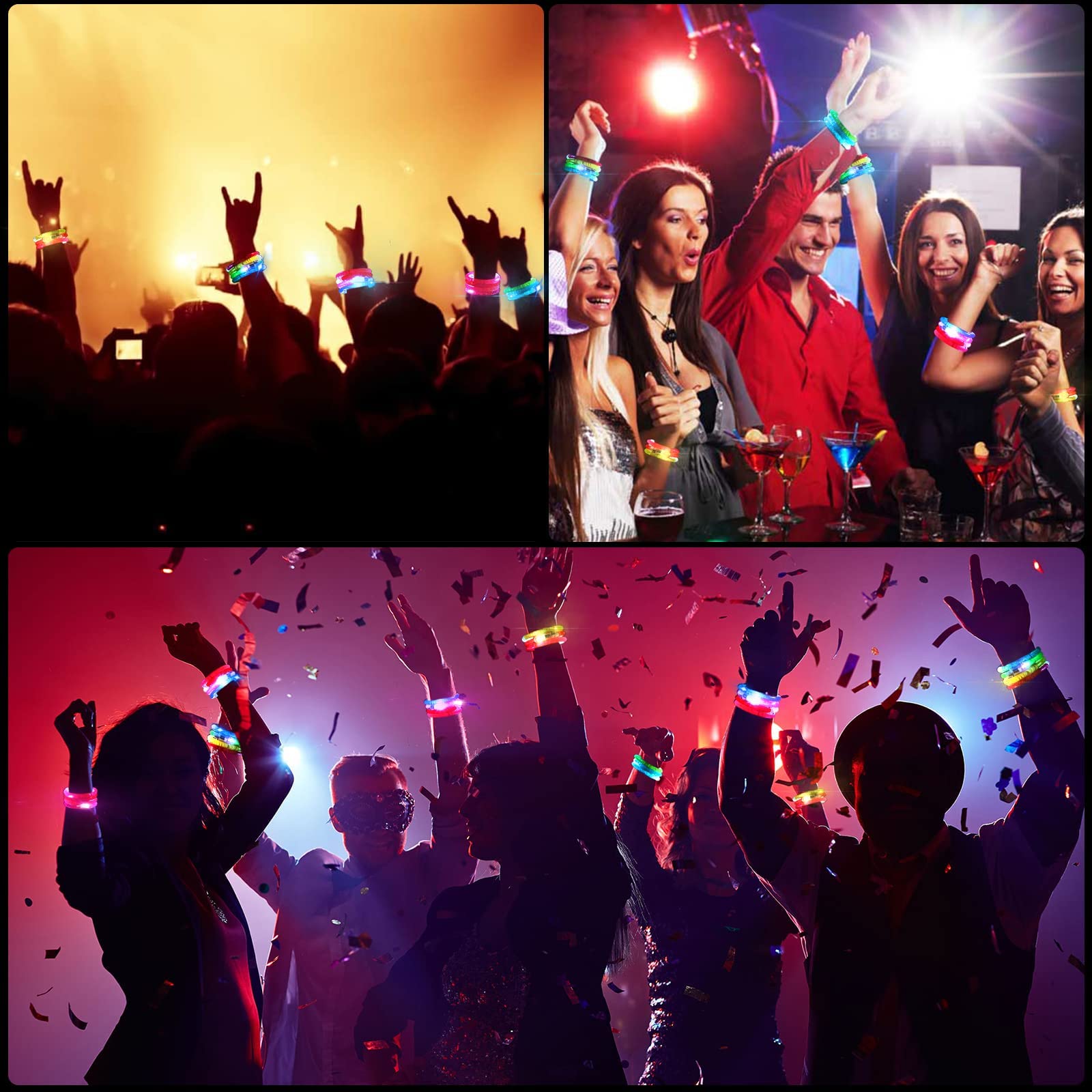 - [Glow in the dark party supplies] Sparkling lights, full of atmosphere, suitable for party scene, birthday wedding parties,surprise parties, glow in the dark party, music festivals, disco, masquerades, Bachelor bachelorette party, New Year, beach, camping, campfires etc, glow in the dark LED bracelet, become the party favors and grab the attention of your favorite him/her!