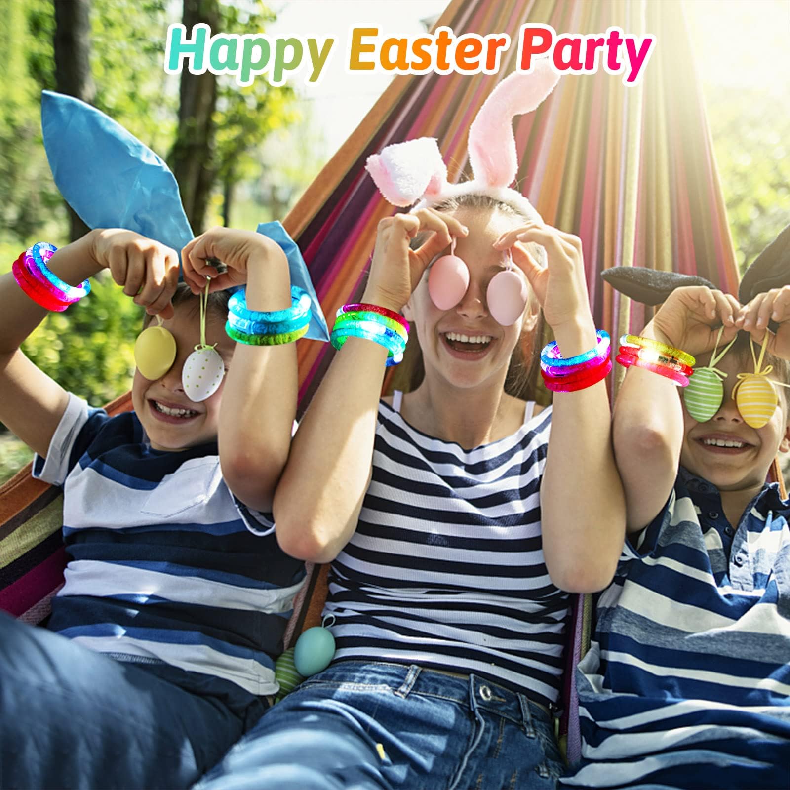 - [36pcs party supplies bulk] Mikulala Light up bracelets comes in 36pcs glow bracelets bulk. Lighting Party Favors supplies are 2.56” ID, and 3.35” OD, and connector is removable and can be worn on large wrists. The light up party favors supplies are suitable for all and available in 6 colors ( red, pink, yellow, green, blue, purple )