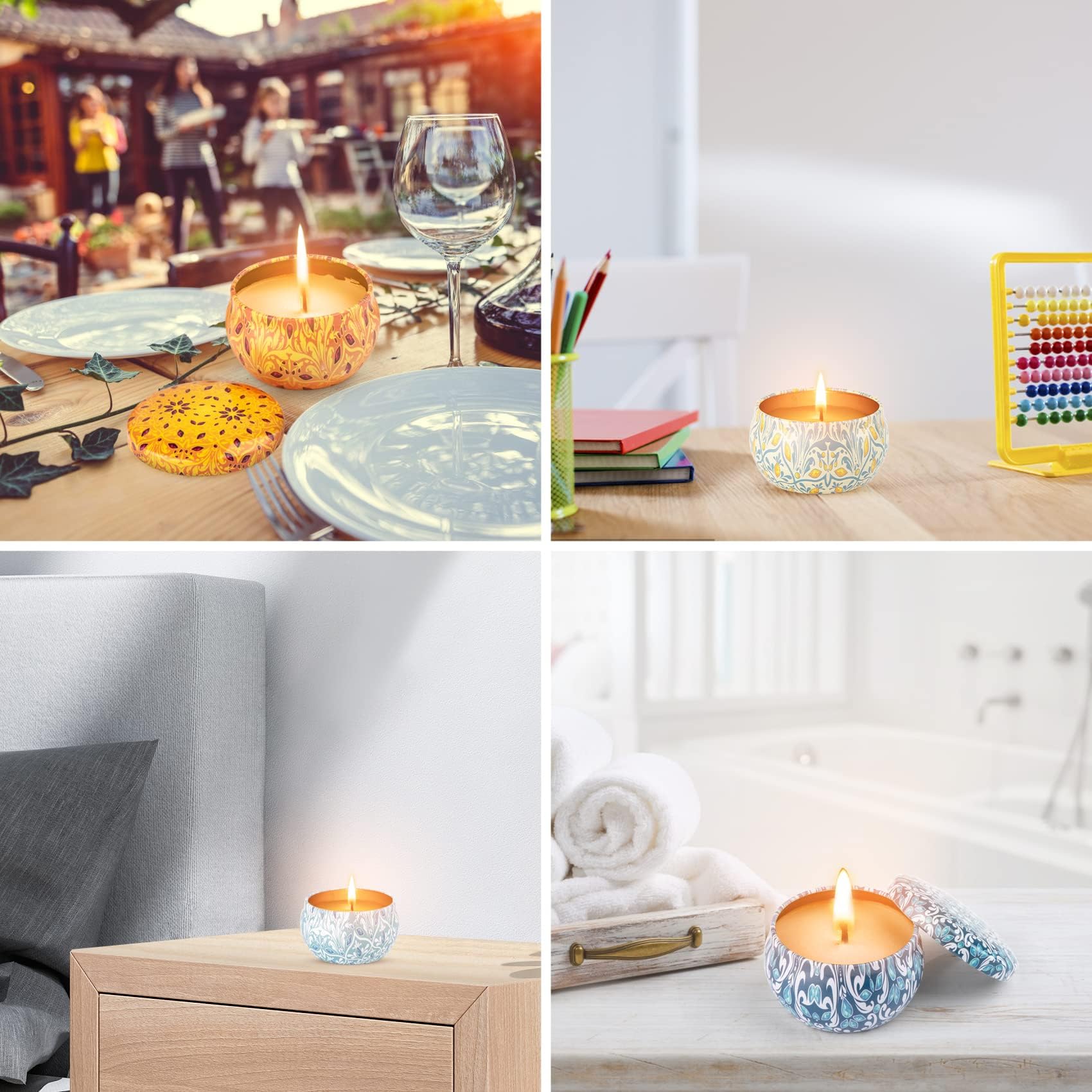 - 【LONG-LASTING TIME COMPLETE COMBUSTION】 Each scented candle is 2.5oz can burn for 15-20 hours, total 30oz burning time is up to 180-240 hours, adding continuously pleasant scents. Creating mood, relief and relaxation for you and guests.