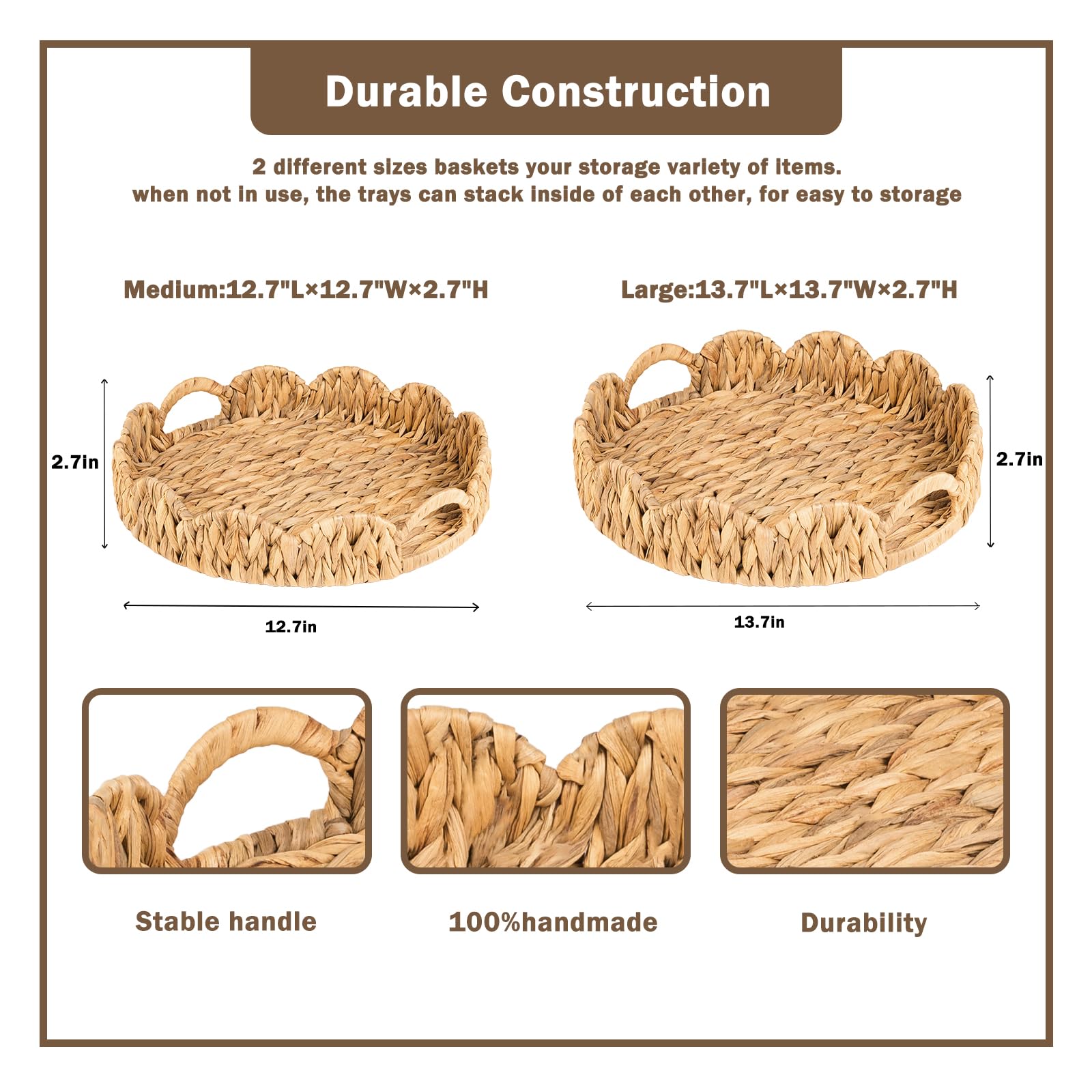 - Nature Material - The woven trays are 100% hand-made from the natural material of water hyacinth which ensuring the safety and health of users by releasing no toxic substances during use.