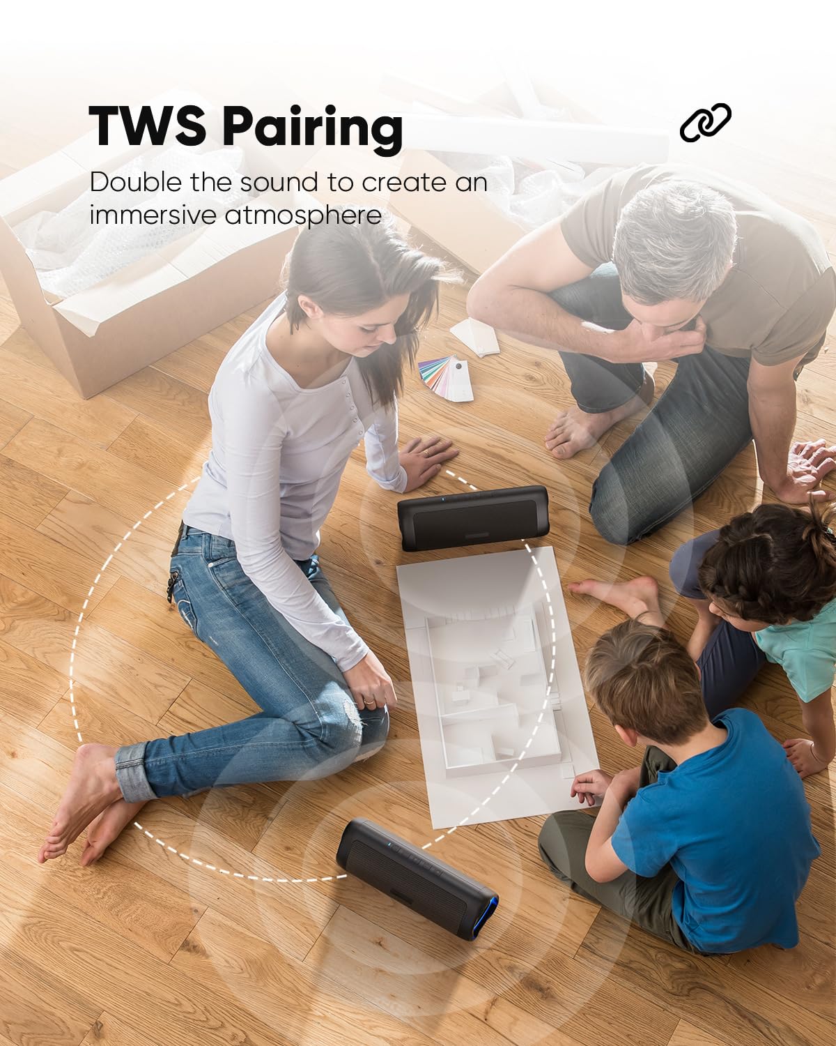 - [Immersive Sound Experience & Dual Connectivity] Experience unparalleled sound quality with this wireless Bluetooth speaker's 2 drivers and advanced technology that delivers powerful, well-balanced sound with minimal distortion. Connect two speakers together to create an immersive stereo sound experience and fill any room with powerful sound. Perfect for gaming, music, and movie playback