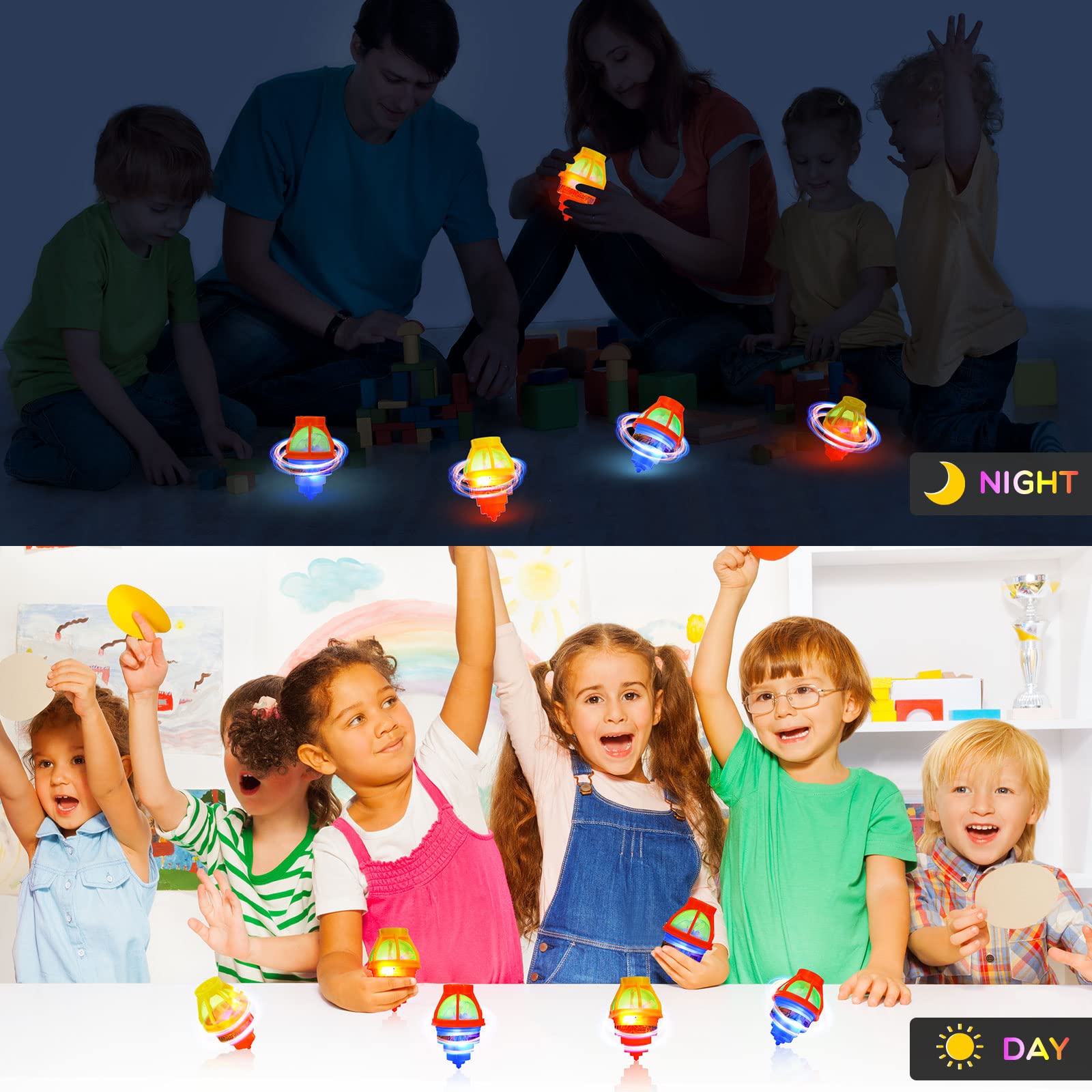 - Safe Material: these flashing spinner tops are made of quality plastic, safe and sturdy enough to withstand violent rotation; They have no small parts which needn't worry about be swallowed by accident, while the smooth surface won't hurt your hands when rotating