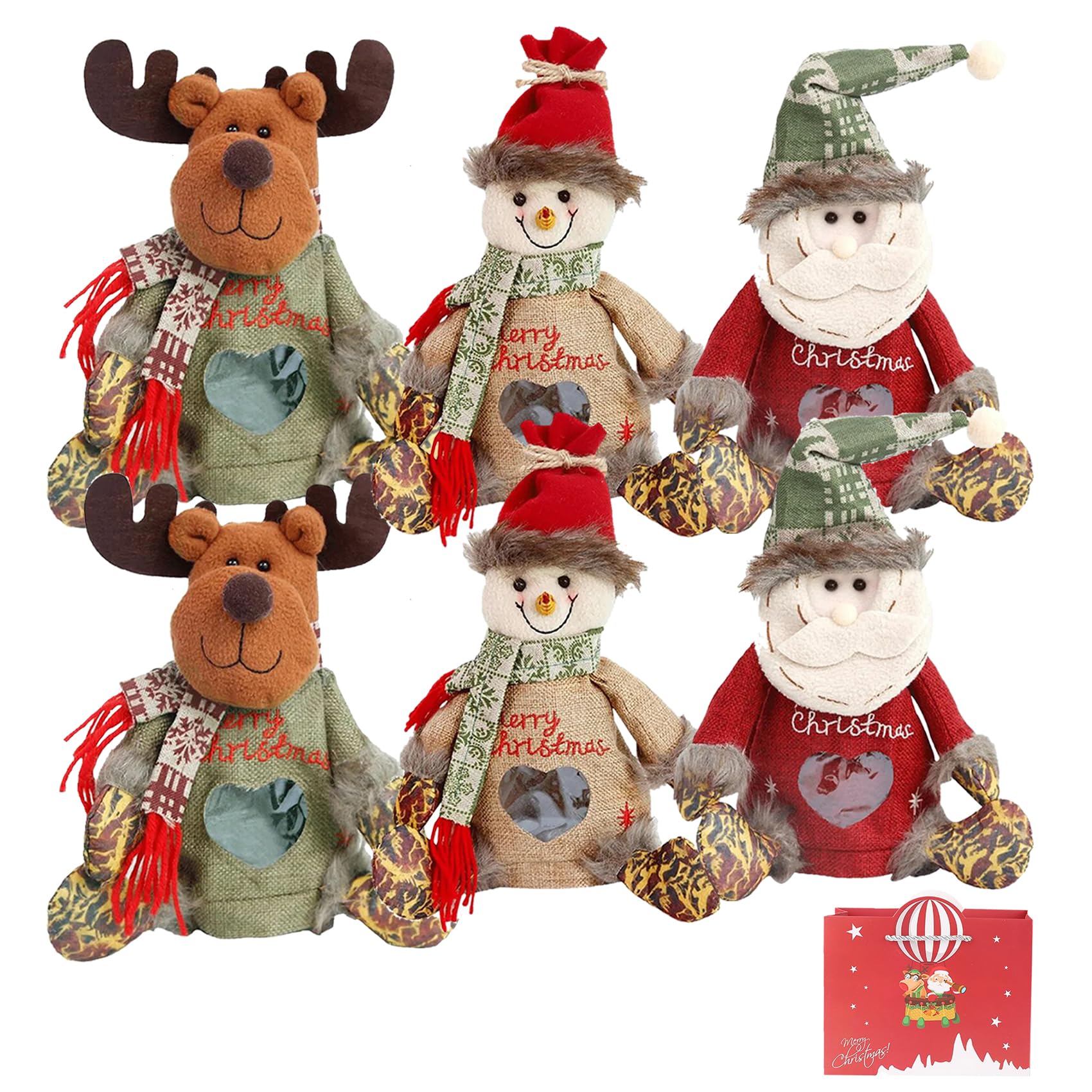 - 【Make Your Party Unique】3D Doll Decoration Gift Bag, Designed with cute snowman, Santa and elk patterns, classic and cute. A Christmas Candy Bag full of Christmas elements will make your party even more special