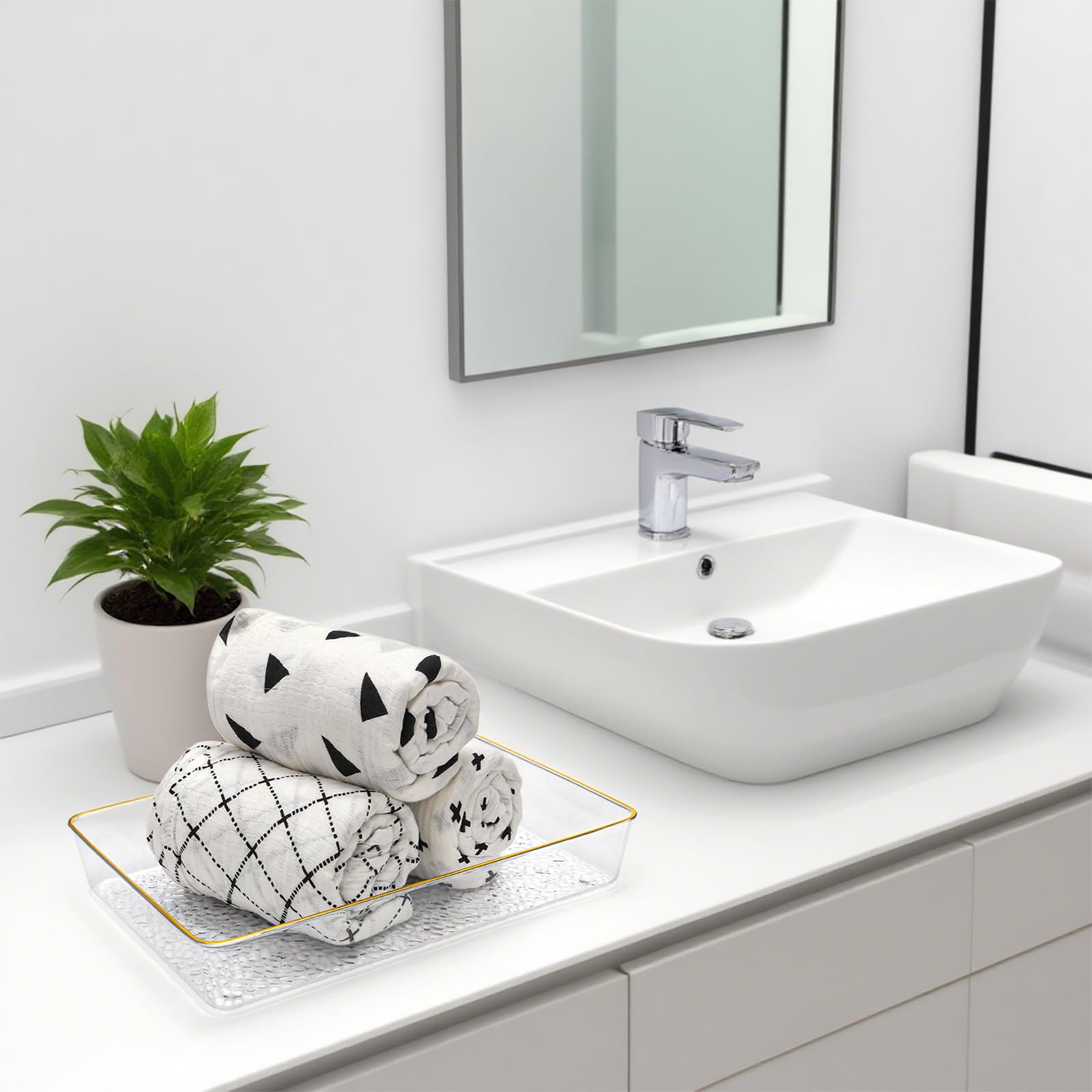 - Elegant Look: Our decorative retro-styled trays are designed with transparent surface with gold rim. And they are crafted with a decorative bottom. The elegant appearance greatly makes your foods more appealing. A fancy table settings for you!