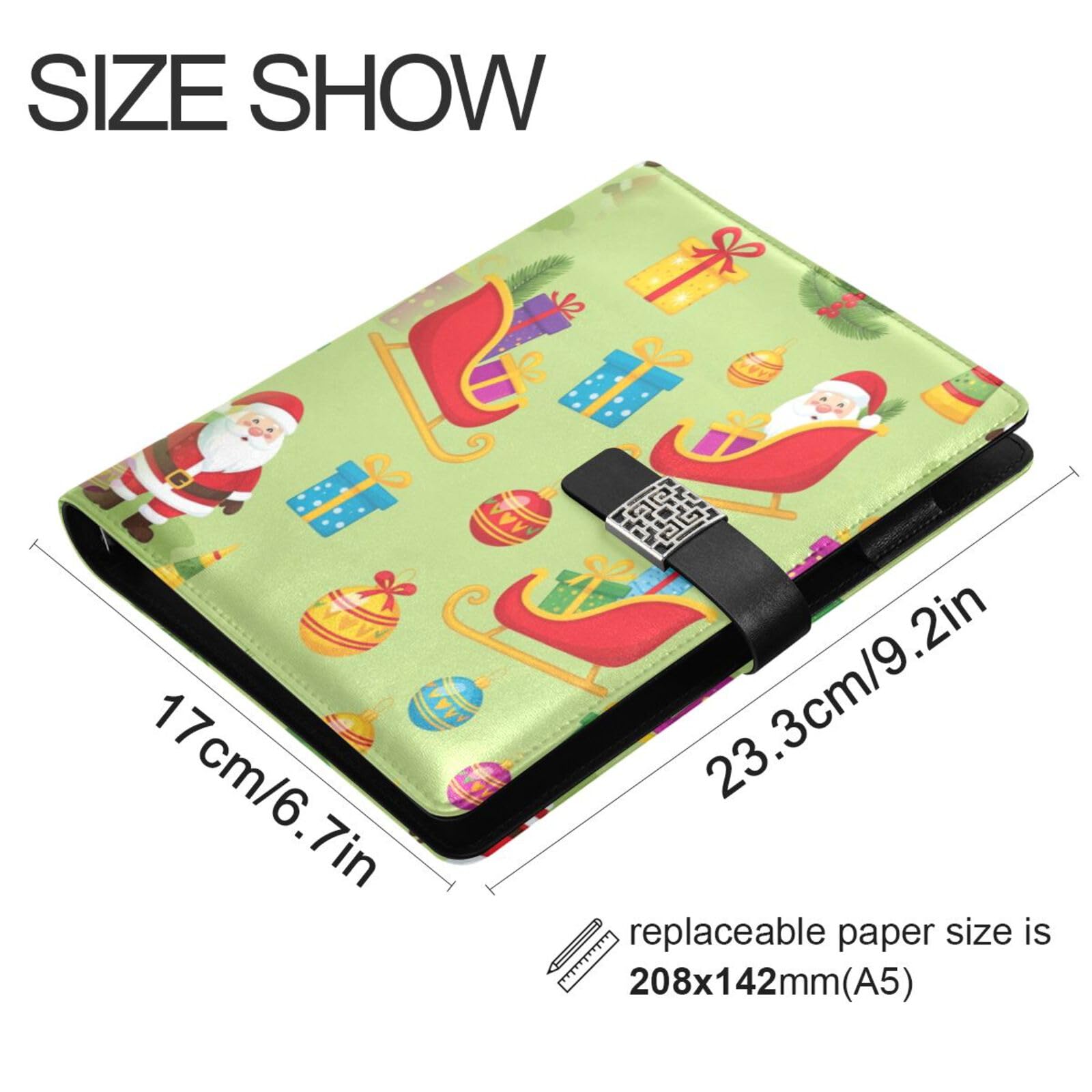 DIGTIA Christmas Gifts Santa Sleighs PU Leather Notebook A5 Binder 6 Ring Refillable Journal with Magnetic Buckle Closure Loose Leaf Travel Office Planner Budget Binder Notepad Portfolio,