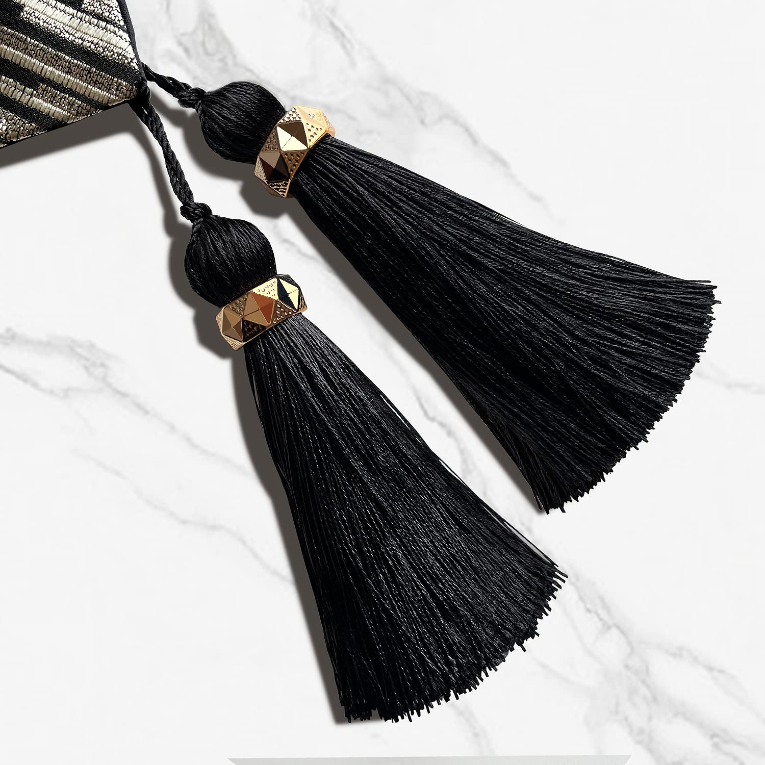 - 【PATTERN DESIGN】Luxury art geometry embroidery pattern design, beautiful and elegant, handmade ring stylish tassels at both ends, comfortable touch, excellent drape. The luxurious and chic appearance shows the extraordinary taste of the owner.