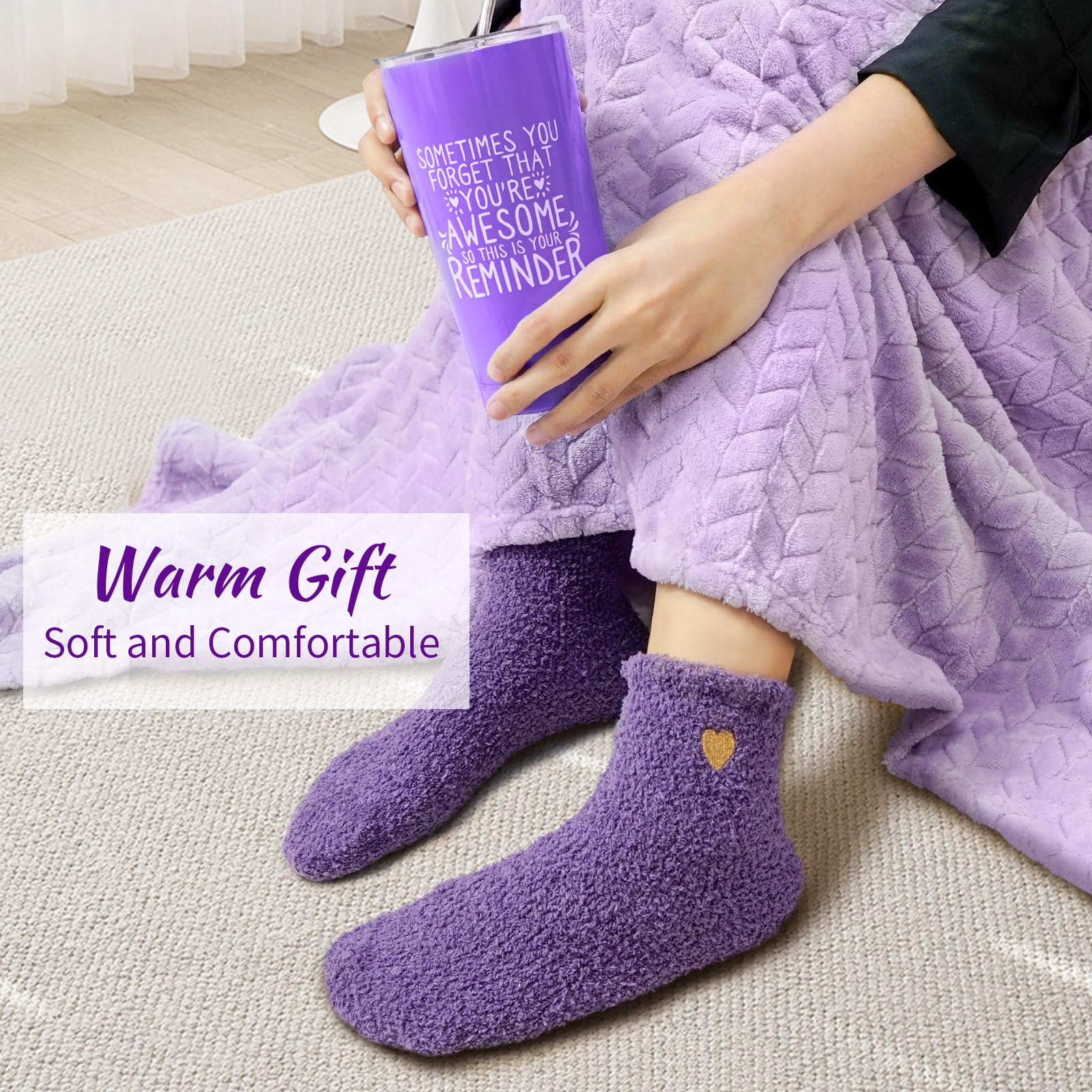 - 16-PCS Luxurious Gift Set:Each set includes: 1*20 OZ Vacuum Insulated Tumbler,1*3.5 OZ Lavender Scented Candle,1*Lavender Bath Ball,1*Diamond Handmade Bath Soap,1*Lavender Scented Bath Salt,1*Lavender Shower tablets,1*Lemon Shower tablets,1*Coral Velvet Bear Towel,1*Purple Agate Stretch Rope Bracelet,1*Silk Eye Mask,1*Scrunchies,1*59x39 inch Flannel Blanket,1*Plush Fuzzy Socks,1*Handmade Crochet Gifts ,1*Elegant Gift Card,1*Exquisite Gift Box