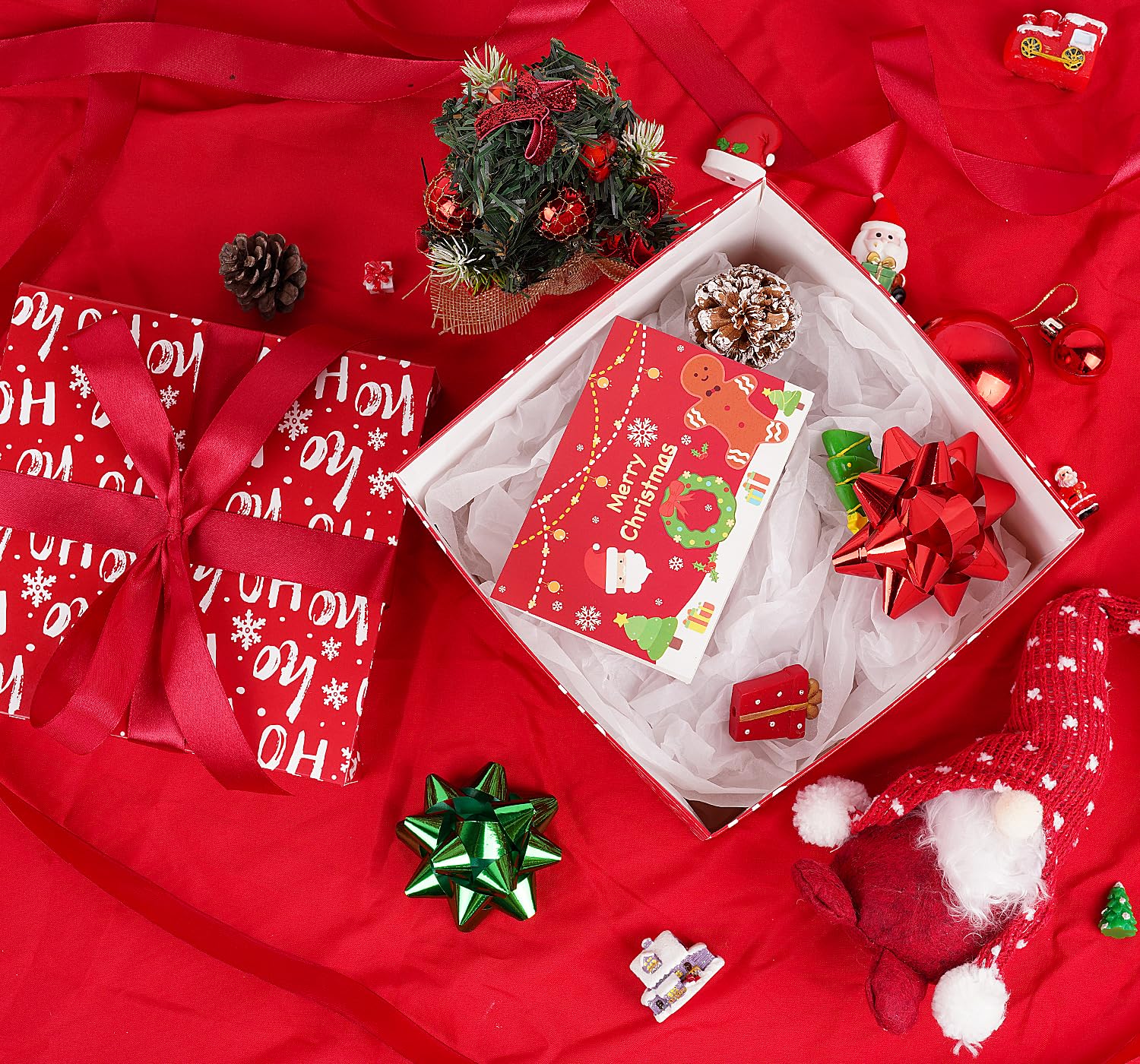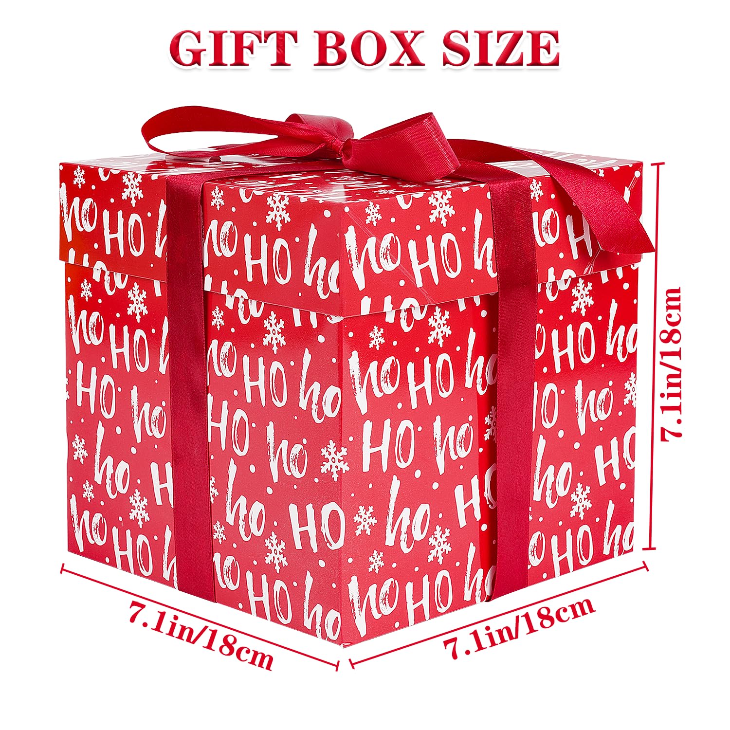 - 🎅Quantity and Size: You will receive 5 pcs 7.1 x 7.1 x 7.1 inch Christmas gift boxes with lids, and 5pcs tissue papers and 5pcs 240cm ribbons. Our ribbon is long enough for you to tie a beautiful bow on the box.