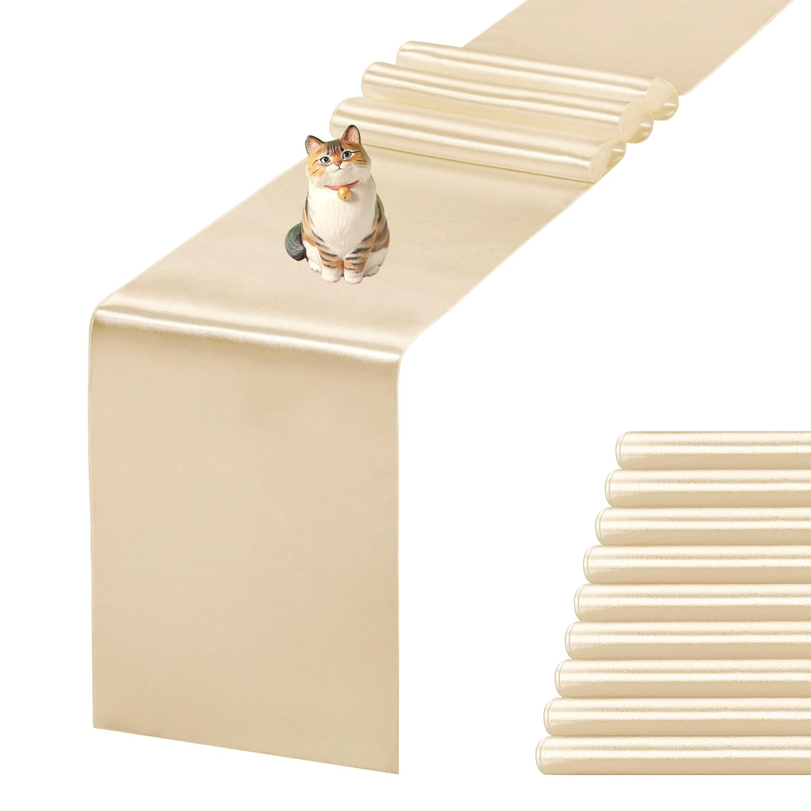 JEVIX 10 Pack Satin Table Runner 12 X 108 Inch Silk Table Runner for Party,Wedding, Birthday, Banquets,Decoration(Champagne)