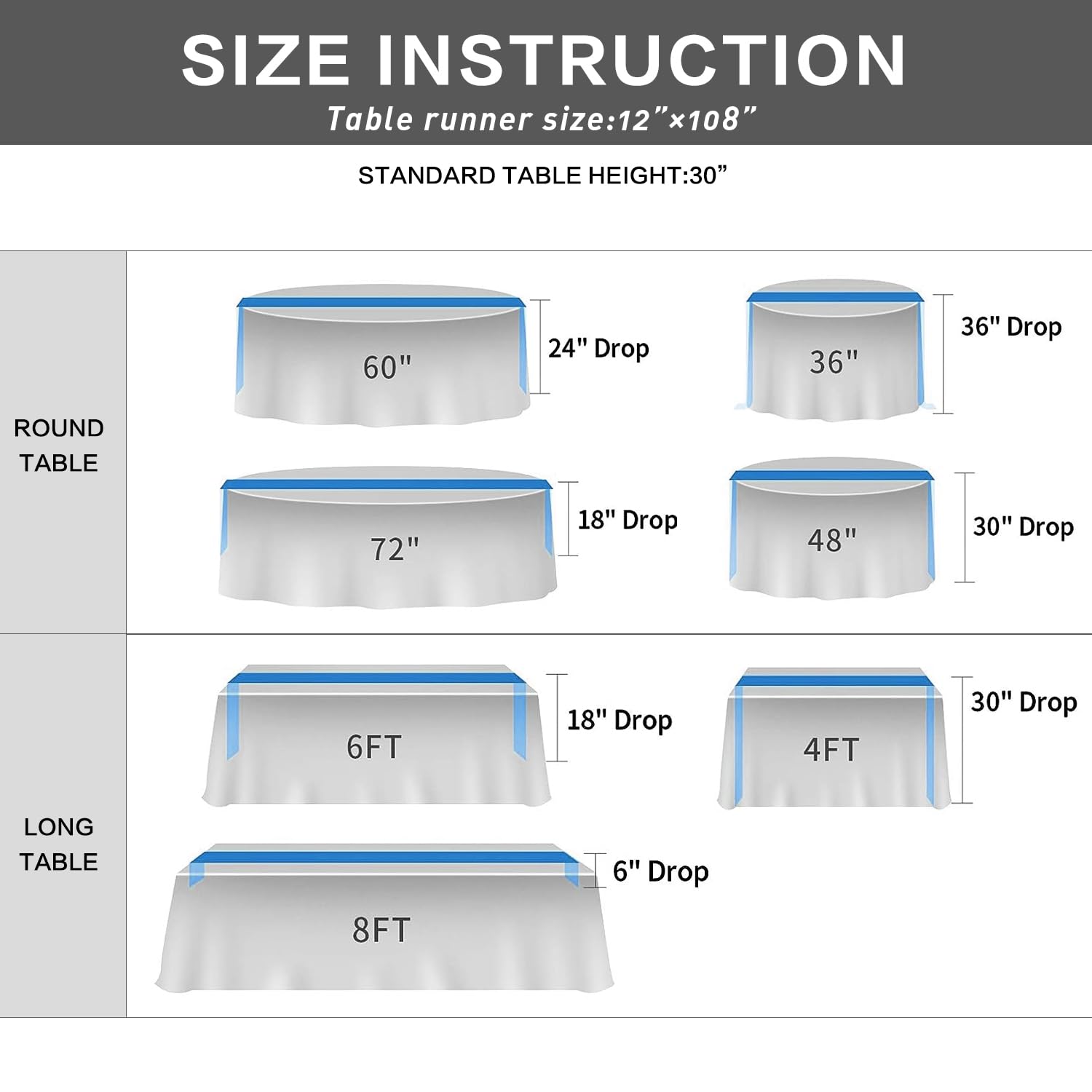 - Each size is 12x108inches(30cmx275cm),suit the table for 8-10 people.