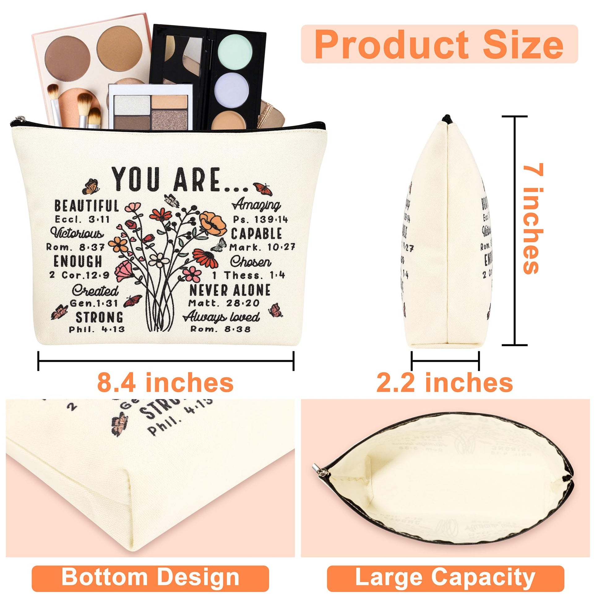 - 🎁【Item Details】Our glass can is easy to clean and won't change the taste of your various drinks. The makeup bag is made of high quality canvas, show her charm, stainless steel keychain with crosses and 'you are' printed on it, use it to transmit her faith. A pink zebra bracelet with a white cross and an information card, and pink dried flower greeting card. It can give her hope, make her feel stronger, more precious, unique.The tote bag has a large capacity, which is sufficient to hold all your daily necessities.