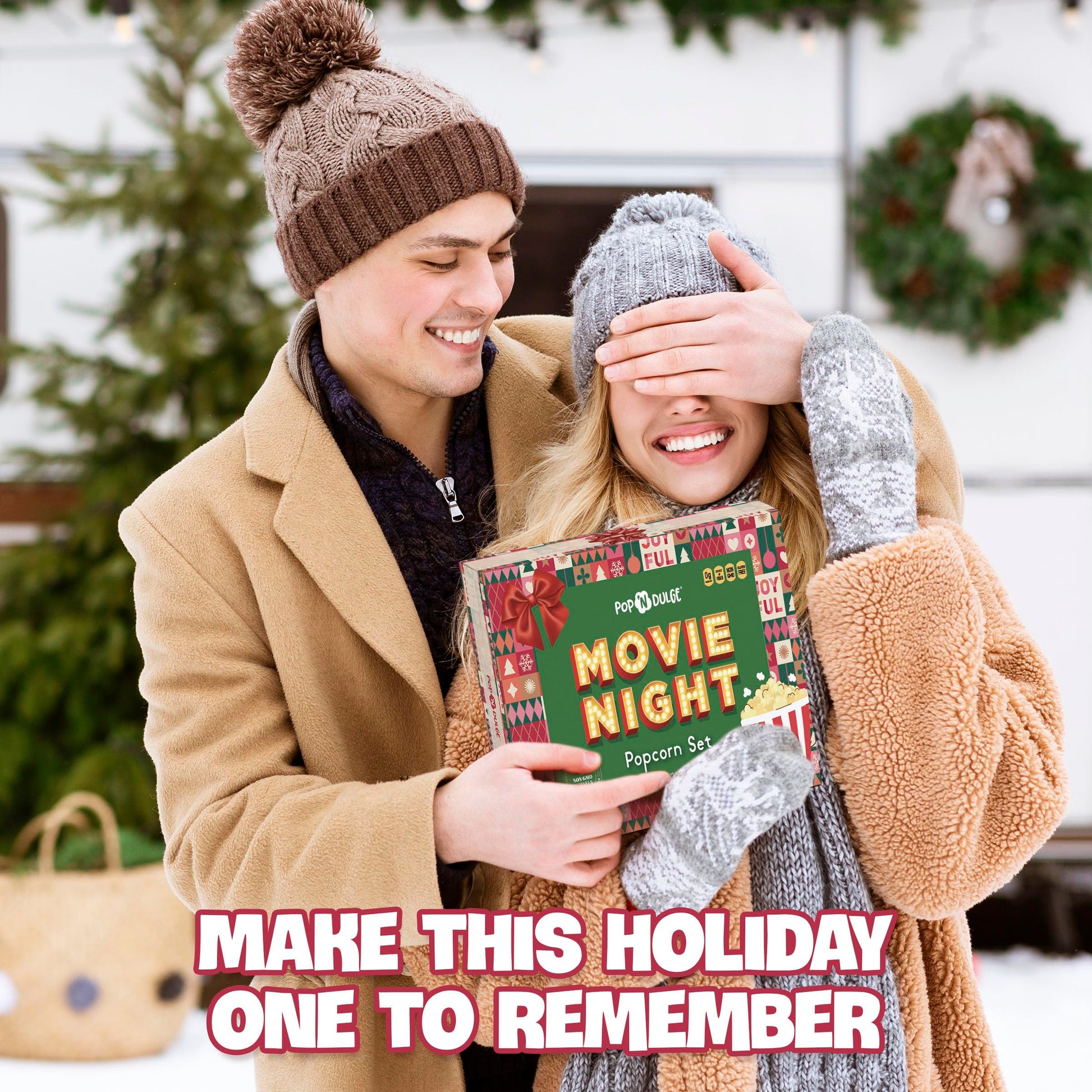 - A GREAT GIFT: Family Christmas gifts, couples Christmas gifts ideas, Christmas gifts for parents — everyone has a reason to love our Pop ‘n Dulge Movie Night Popcorn Holiday Gift Set. Also a wonderful choice for date night, family gifts, foodie gifts, and birthday gift ideas!
