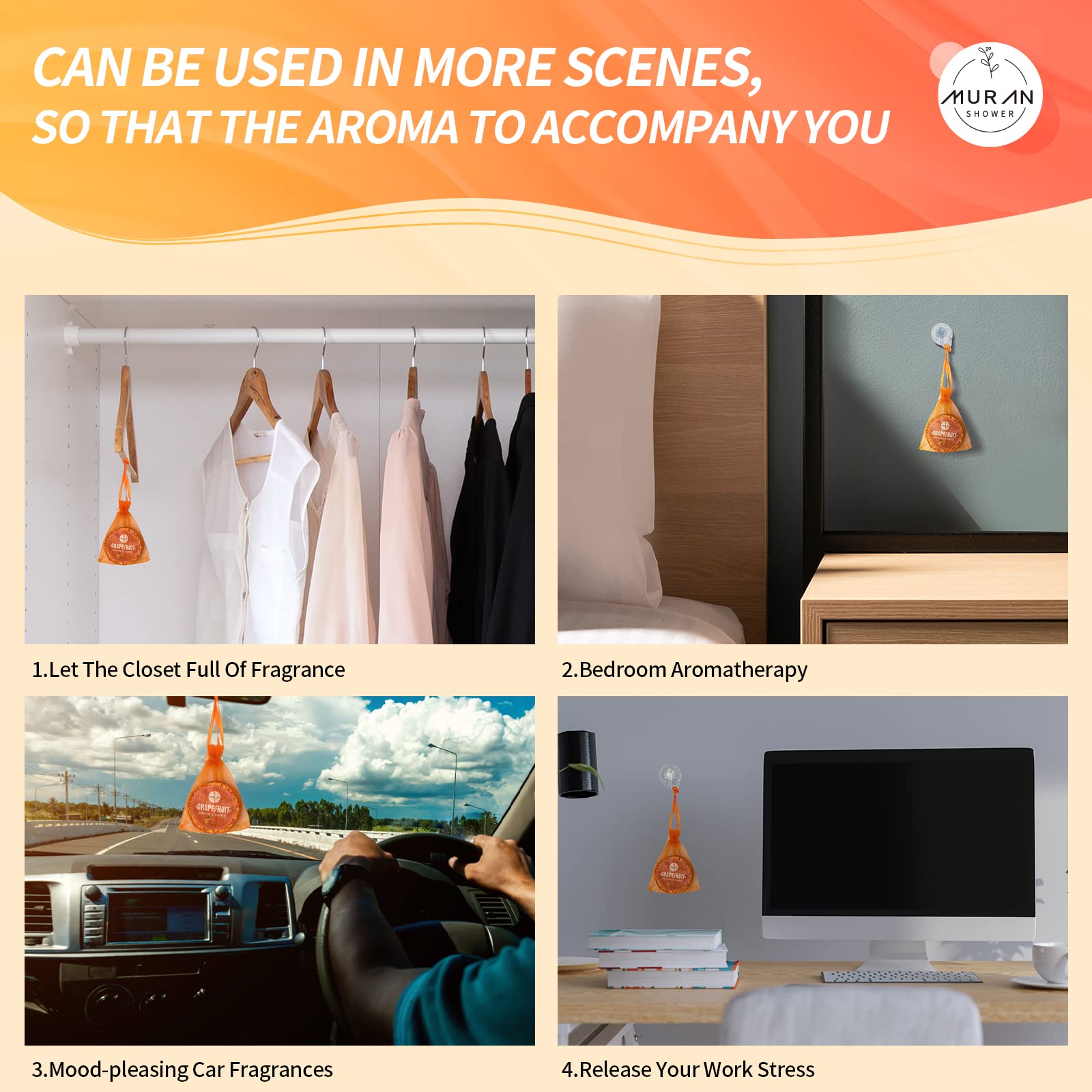 - [New upgraded experience, definition of aromatherapy] For the best shower experience, we have researched many shower bombs on the market and upgraded and improved their scent, shape, and size, MURAN shower steamers are naturally fragrant, it allows you to take a slow deep breath and enjoy every moment of relaxation, try this home spa set now