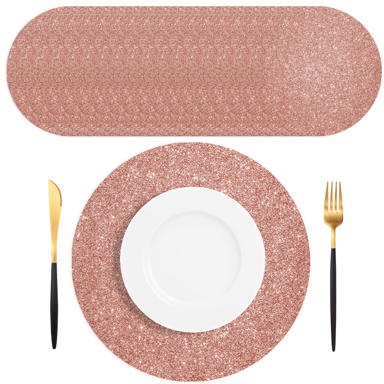 - High-Quality Material: Rose gold placemats are made of high-quality thick paper, which is strong enough to hold messy meals and will not break easily when wet. It can protect the table from grease and liquids stains