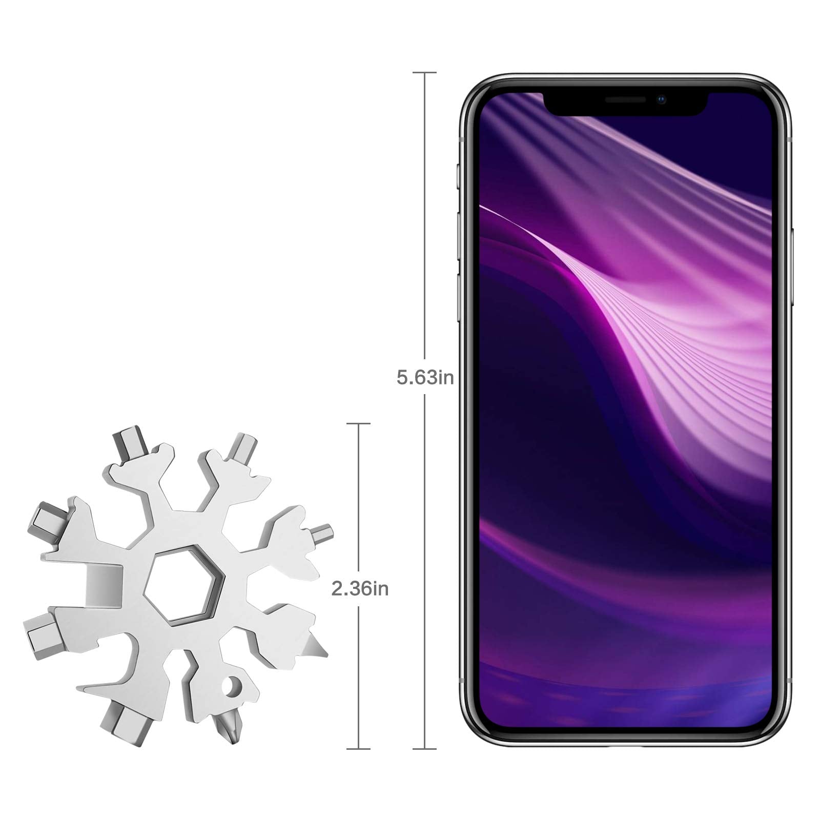 - Space Saver Multitool: The snowflake multitool is small (2.36 ' diameter) , but not too heavy (2.8 oz) connected to keychain or backpack with the included carabiners and keyrings. The multi tool can be used in travels, outdoor adventures, sports, camping, rescues...
