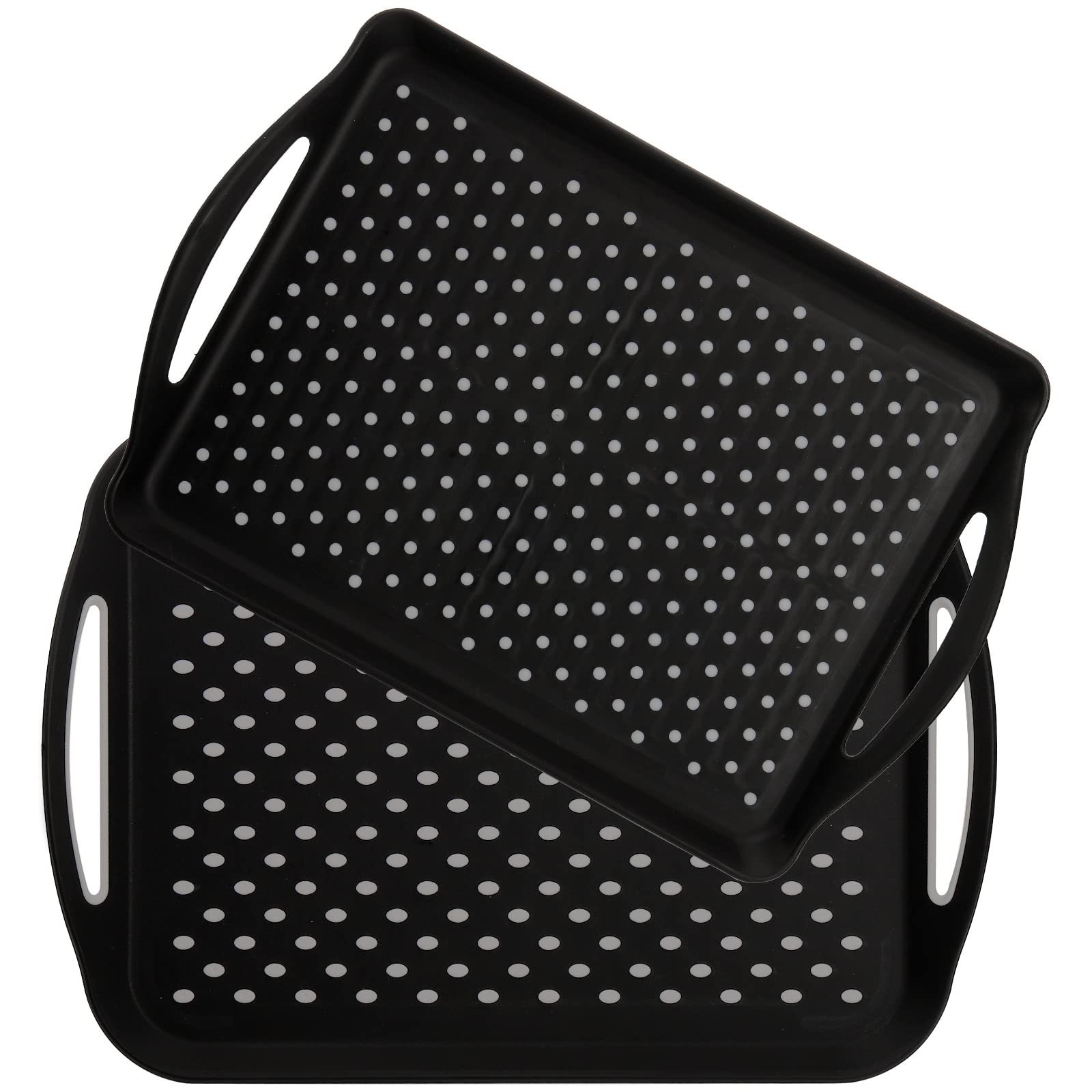 - Package includes 2 pack TOPZEA black anti-skids serving tray, comes with 2 sizes, Small size: 16.5 inch x 11 inch, Large size: 17.5 inch x 12.5 inch, perfect size to use in a car for a meal tray, they are great helper to serve food & drinks, and can be nested when they are not used and save space.